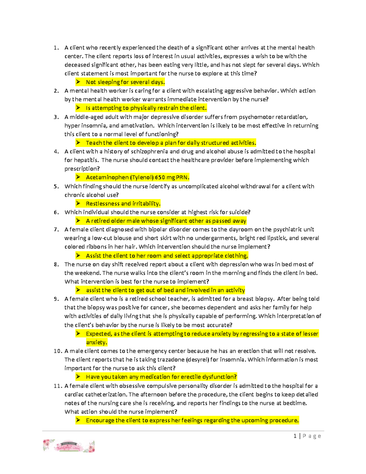 4 Hesi Mental Health Psych 55 Questions Hesi Mental Health V4 2018 55 Questions 1 A Nurse Is Studocu