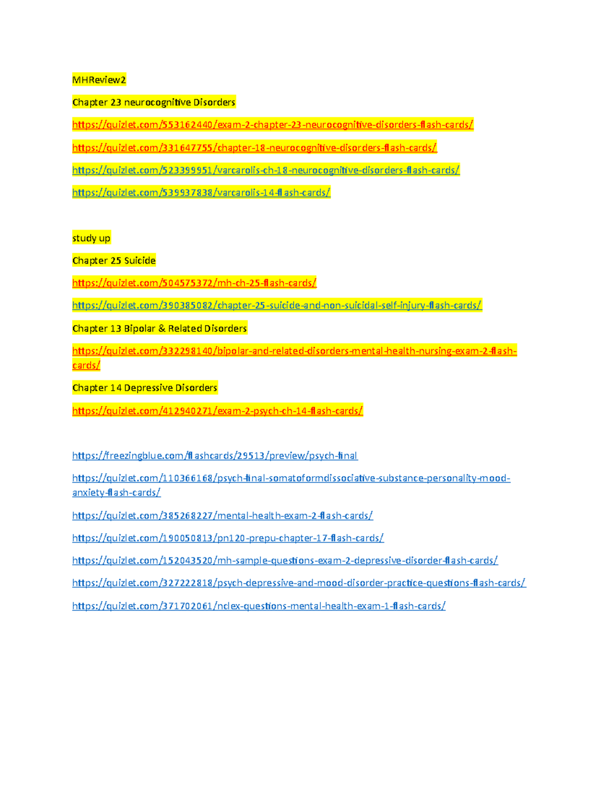 Hesi Rn Mental Health Hesi Review Multiple Choice Flashcards Quizlet Studocu